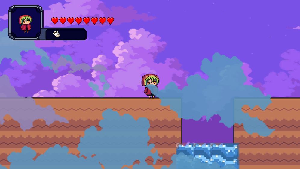 the pixel art looks really nice, but you should probably redo the player's sprite, it looks so out of place being so detailed, and also the physics could use some work it feels like im in space, other than that, good job!